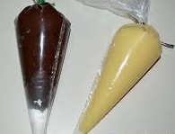 2. Troceamos el chocolate y lo metemos dentro de la manga pastelera y colocamos la bolsa dentro del cestillo