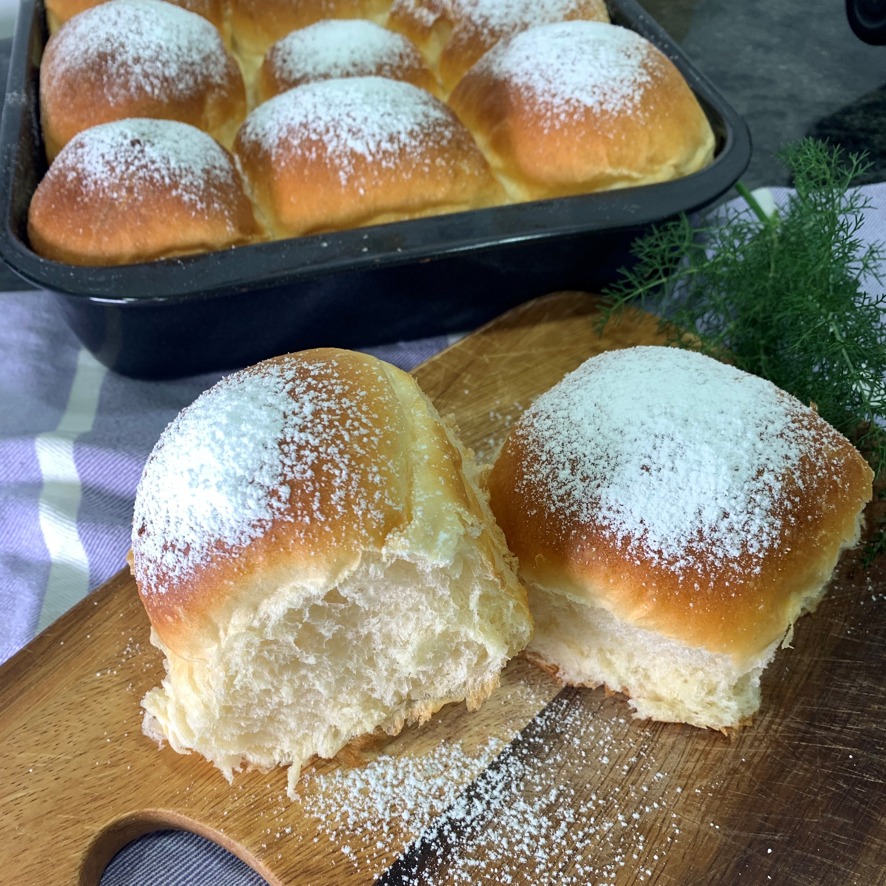En ésta ocasión, el bollo es una nube, super esponjoso....mucho más que un brioche con mantequilla, de los que suelo hacer bastante a menudo, éste brioche, en vez de mantequilla, lleva creme fraiche, una nata ácida y cremosa que le da una textura deliciosa, aunque no es nada dulzón, es más bien neutro, así que si queréis un resultado más dulce, podéis poner un poco más de azúcar o rellenar las bolitas con frutos secos y azúcar, dulce de chocolate o dulce de leche, si en cambio, lo que queréis es más salado, basta con restarle un poco más de azúcar a la receta y rellenarlo de sobrasada o alguna mezcla de queso y tomates secos (uhmmm, el próximo estará relleno de esa mezcla) jejeje