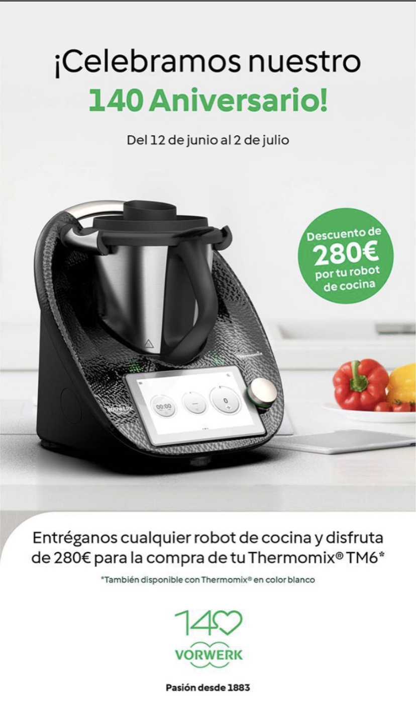 Y te lo cambiamos por un Dto de 280 en la compra de tu thermomix