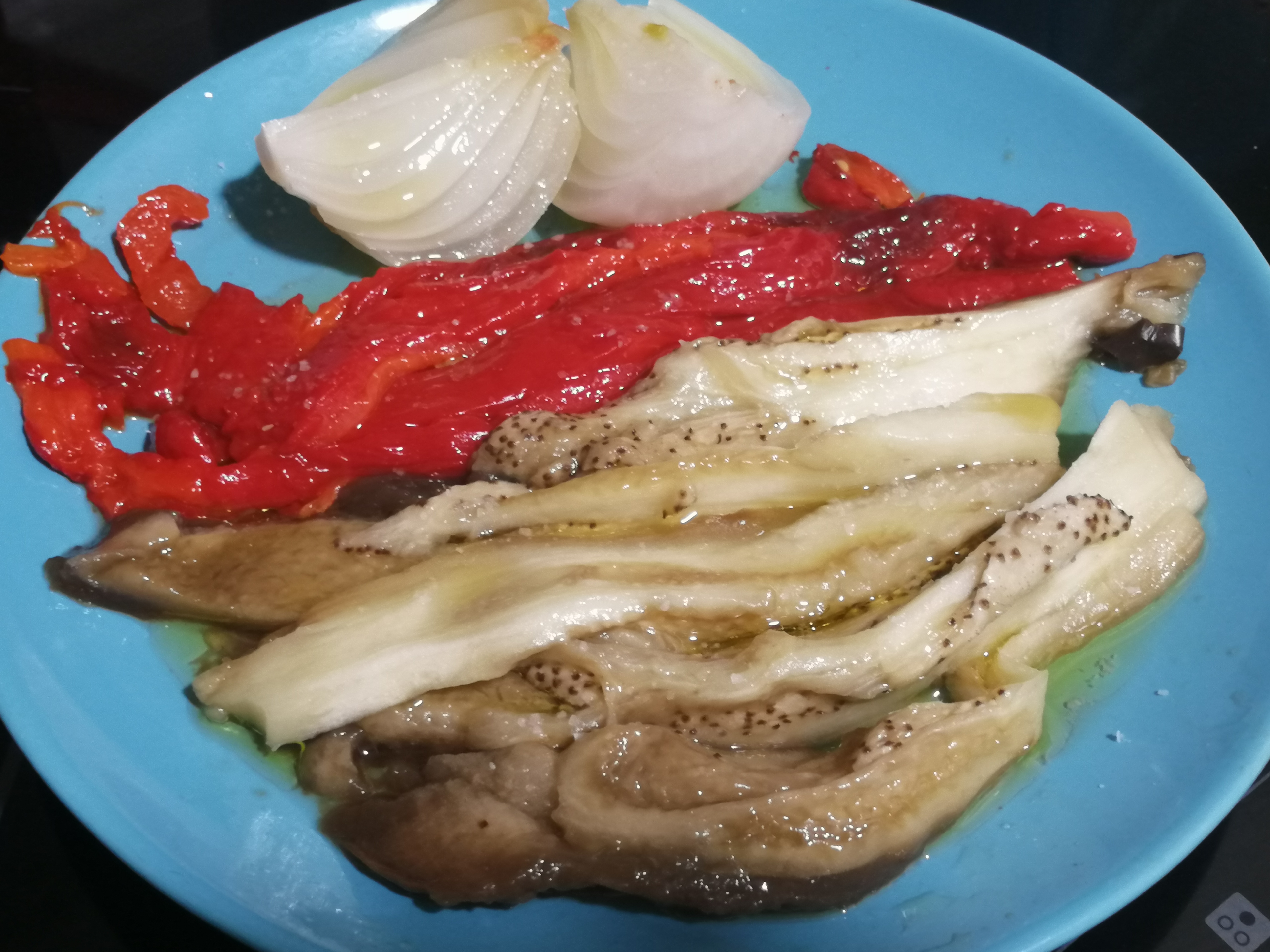 Para que queden las verduras con un glaseado natural bo hay que añadir nada! Por eso me encanta este plato, que puede consumirse caliente, templado o frío, un buen aceite de oliva y una sal que te guste...todo natural, todo espectacular.